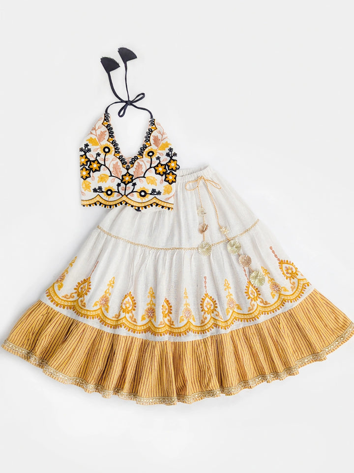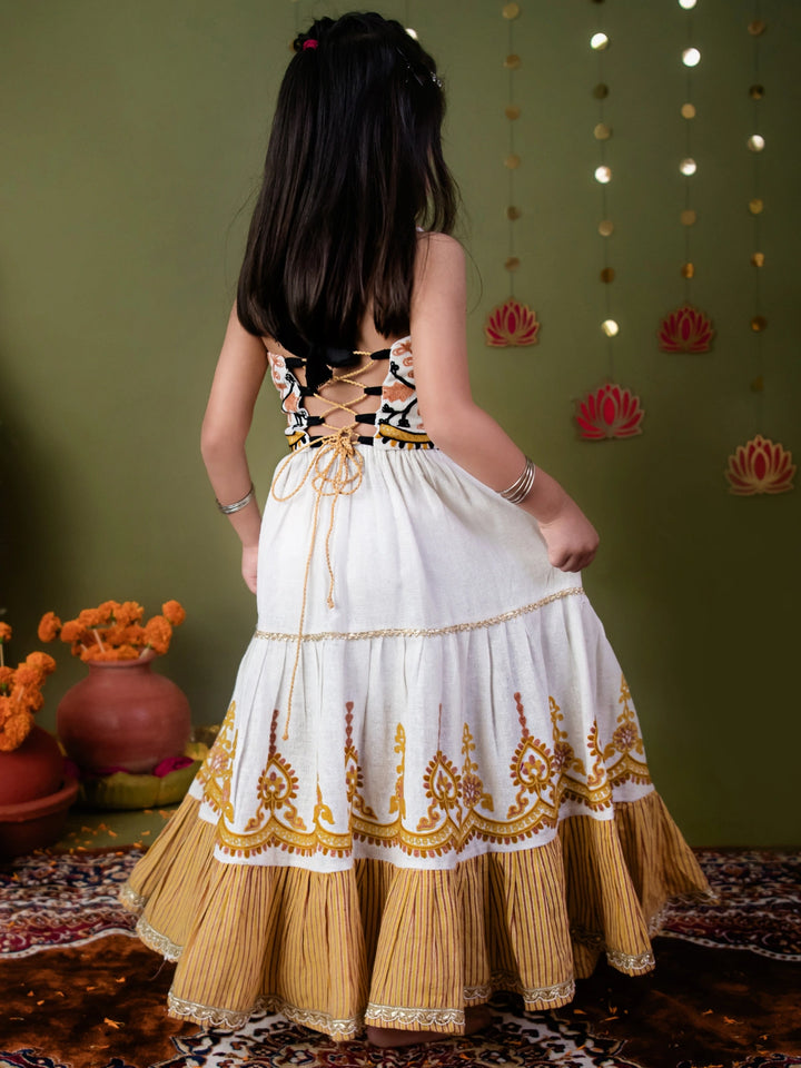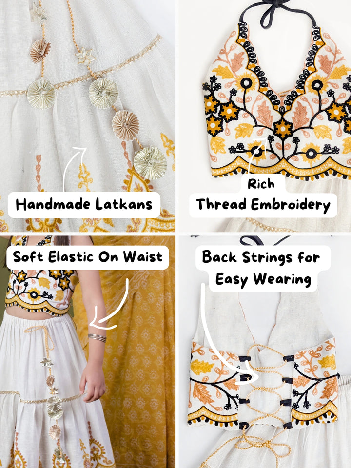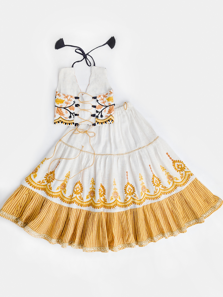 Suvarna Mustard Jute Lehenga Choli Set for Girls