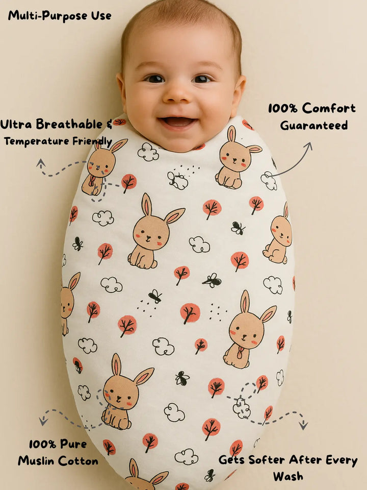 100% breathable, Non itchy and skin-friendly Muslin cotton.