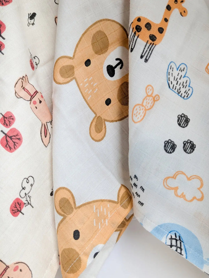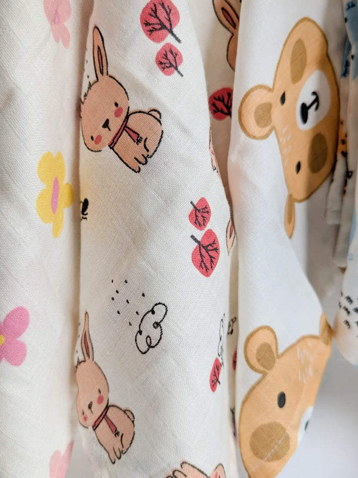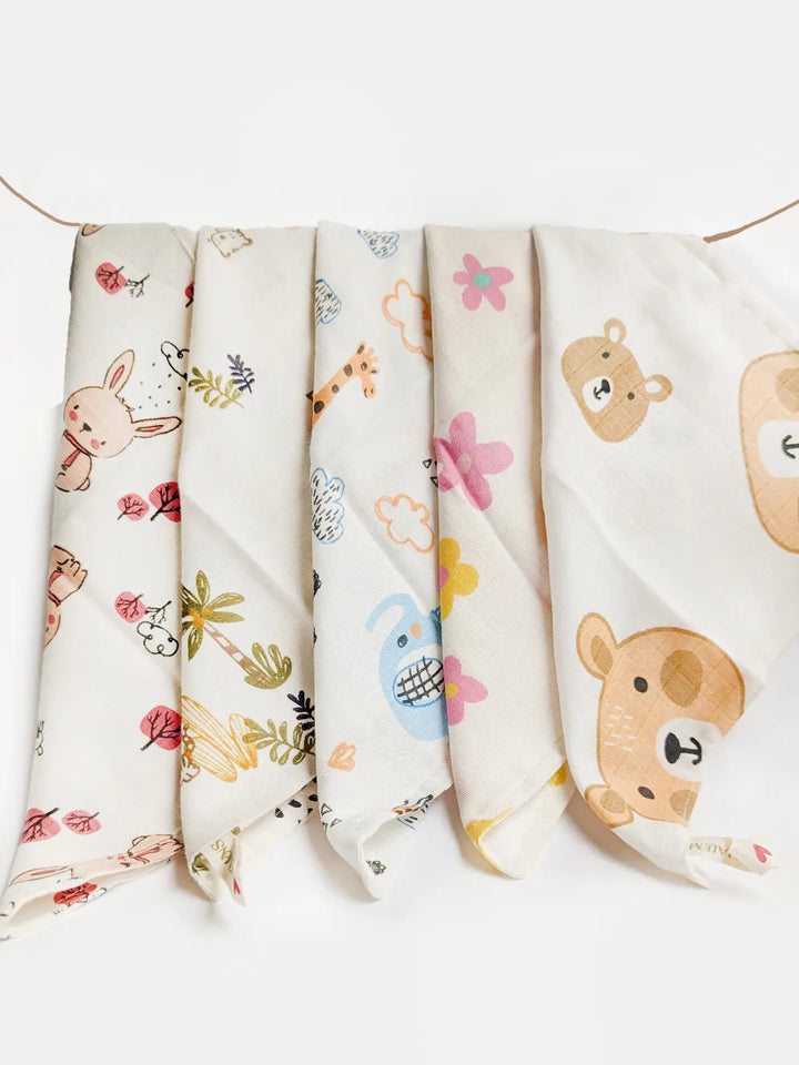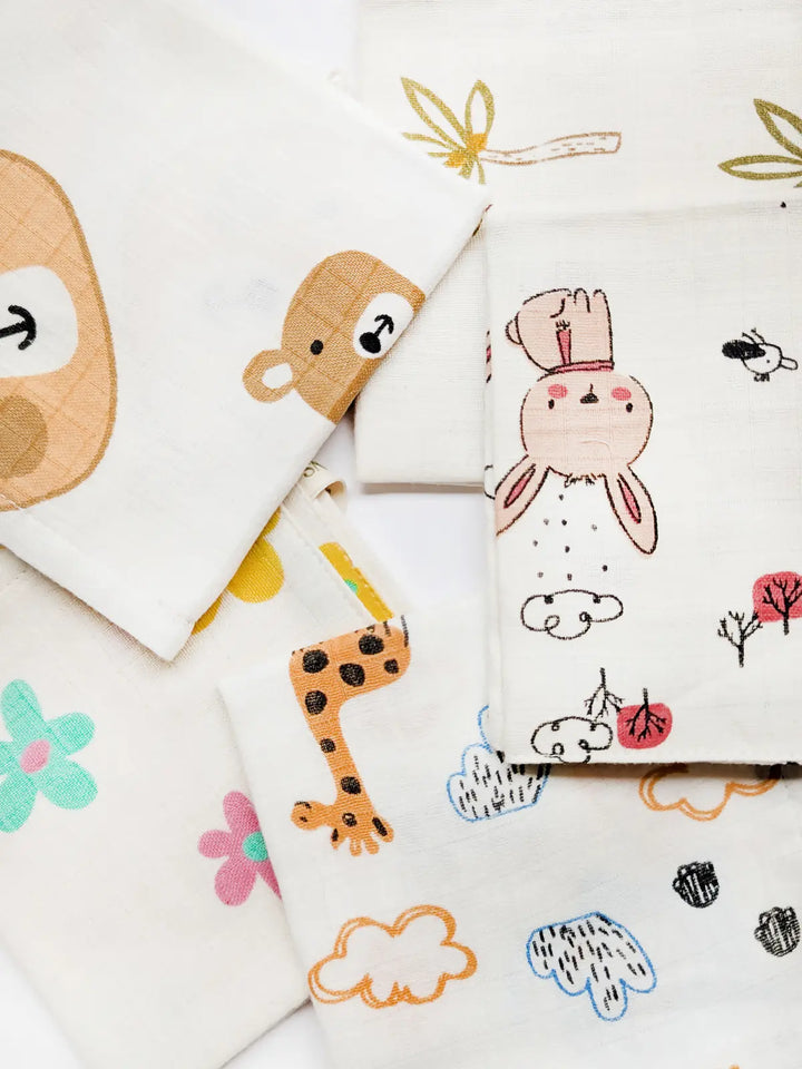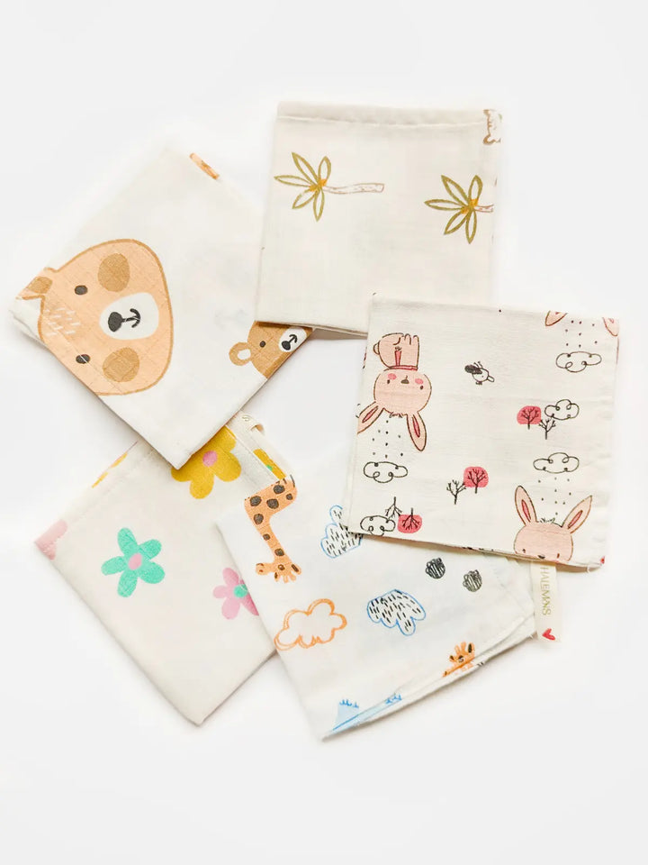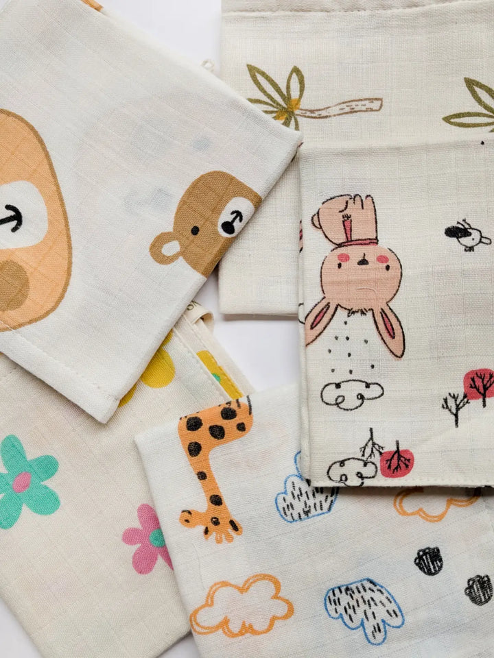 Pure Muslin Printed Reusable Infant Wipes (pack of 5)